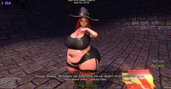 - Rapid weight gain for both the player (male) and the witch (female)